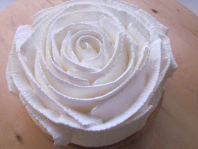 Pursotin terälehtiä pätkissä, mutta jos haluaa spiraalin niin pursotusta voi vaan jatkaa yhtäsoittoa ja samalla pyörittää kakkuhyrrää tai muuta pyörivää alustaa. Varsinkin noita spriraaleja on maailmalla näkynyt paljon esim. täällä ja täällä ja vielä erityisellä sivuaukkotyllalla tehtynä saa tosi kaunista jälkeä.